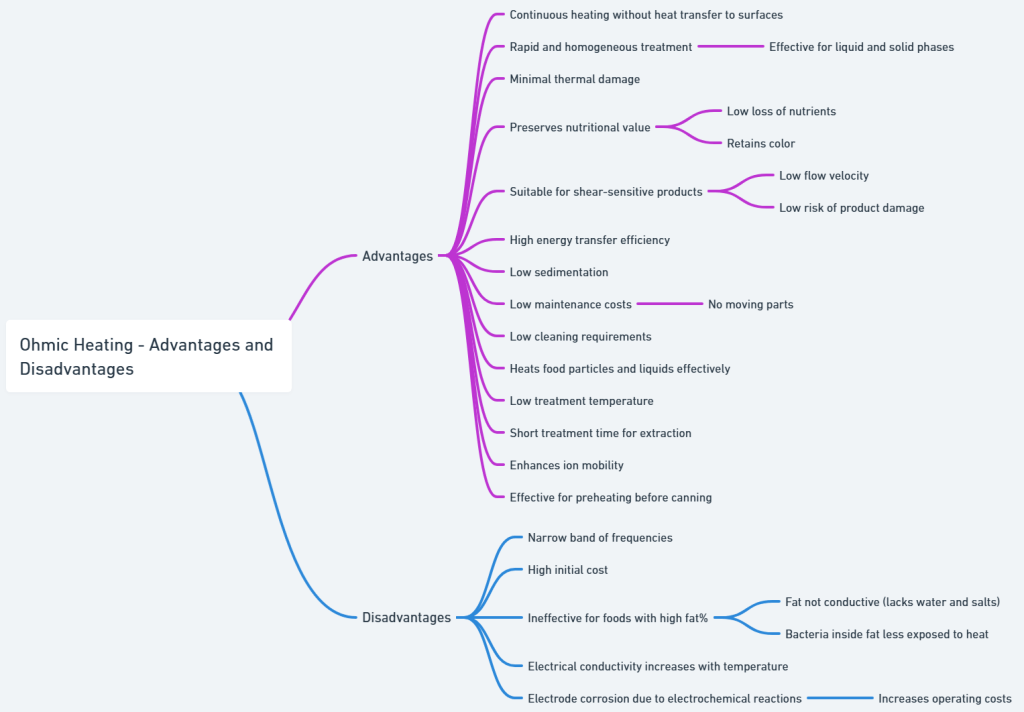 Extensive studies have investigated the use of ohmic heating comparing it to conventional methods. Results suggest improvements in food safety, quality, and flavor, along with extended shelf life. Due to its ability to rapidly heat without excessively heating the food surface, ohmic heating is considered a promising alternative to conventional heat treatments and allows processing at lower temperatures (Alkanan et al., 2021).